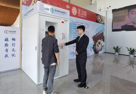 农行福州自贸片区分行工作人员为客户介绍自助现金终端功能